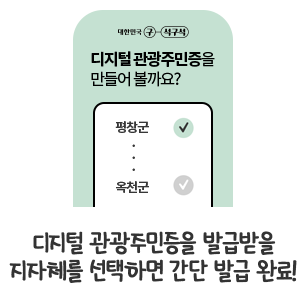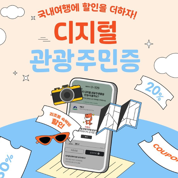 ๋์งํธ ๊ด๊ด์ฃผ๋ฏผ์ฆ์ ์ธ๊ตฌ ๊ฐ์ ์ง์ญ์ ๊ด๊ด ํ์ฑํ๋ฅผ ์ํด ๋ฐ๊ธ๋๋ ๋ช ์ ์ฃผ๋ฏผ์ฆ์ ๋๋ค. ์ด๋ฅผ ํตํด ๊ฐ ์ง์ญ ๊ด์ขก์ง์ ๋ฐฉ๋ฌธํ์ฌ ์๋ฐ, ์์๋ฃ, ๊ด๋, ์ฒดํ ๋ฑ ๋ค์ํ ์ฌํ ํ ์ธ ํํ์ ๋ฐ์ ์ ์์ต๋๋ค.
