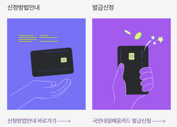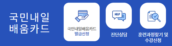 ๊ณ ์ฉ๋ ธ๋๋ถ์์ ์ฃผ๊ดํ๋ ๊ต์ก ์ง์ ์ ๋ ์ค์ ํ๋์ธ ๋ด์ผ๋ฐฐ์์นด๋๋๋ ์นด๋ ํ ์ฅ์ผ๋ก ์ต๋ 500๋ง์๊น์ง ๋ค์ํ ๋ถ์ผ์์ ํ์ํ ์ญ๋ ๊ฐ๋ฐ ๊ต์ก์ ๋ฐ์ ์ ์๋ ์นด๋์ ๋๋ค. ๋ด์ผ๋ฐฐ์์นด๋ ์ฌ